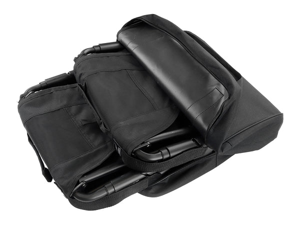 A canvas bag that holds two (2) Expander Chair. Zippered access. Two (2) carrier straps to support added weight. Black nylon edging for added ridgidity. Reduces rattle when traveling.