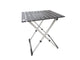 Table height is adjustable, the perfect companion to the Expander Chair (CHAI007). Heat-resistant tabletop has a useable surface area of 635mm/25'' x 635mm/25'' and supports 27kg / 60lbs. The lightweight, aluminum design folds flat and stores away neatly. Includes a travel bag for storage and easy transport.