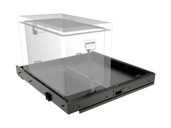 This flat drawer can hold a refrigerator along with chairs, cargo boxes, and other gear. Or it can simply be used to easily access groceries and other everyday items.Secure up to a 52L (or equivalent) size fridge, with additional room for storage -- such as the Front Runner Wolf Packs or Cub Boxes, tents, chairs, camp kitchen items, tool kits, etc. Mounts to the existing tie down points in the bed of the JKU and does NOT REQUIRE DRILLING into your 2011 + Jeep Wrangler JKU. Push to close dual latching lock securely keeps the unit closed and rattle-free. Works with the factory Sub Woofer in place. When extended, 100% full access to the storage cubby. Features multiple tie down points for Stratchits or many other style straps. Load Rating: 113 kg / 250 lbs. Finished with the same durable black powder coating as Front Runner Roof Racks and other Front Runner products. The Front Runner JK Cargo Slide is the perfect companion to the VACC021. If you own a 2007 - 2010 JKU, installation of this product requires drilling 2 9mm holes into the body of your vehicle. See Installation Instructions for more details. This product was not designed for 2-Door JK models.All Front Runner Storage Systems are backed by a 2 year warranty.