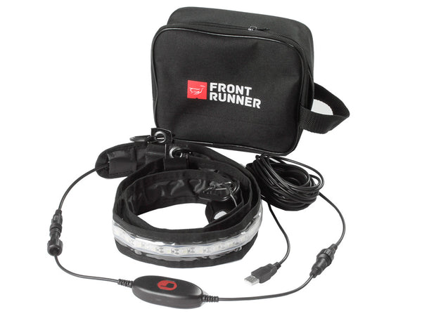 For use in a camper, tent, boat or at home. The high intensity SMD5050 LEDs, delivers 6000k of natural white light for maximum clarity. 3 fully adjustable hook and loop mounting tabs make this light strip ideal for any application. 3 Snap hooks are included to mount your light strip for various uses, including the handy attachment points found in the TENT031, TENT045 as well as Front Runner range of awnings. The the touch-sensitive controller adjusts the light intensity ensures the desired amount light is delivered. Dimmer adjustment allows adjustment from 6000k brightness. Use the handy dimmer switch to adjust from bright utility lighting down to warmer, more intimate illumination inside your tent or awning room. Housed in a water, UV and scratch resistant clear PVC casing. Store your LED light strip and accessories in the supplied carry bag. Plugs into any USB port found in any power bank, laptop or car charger.