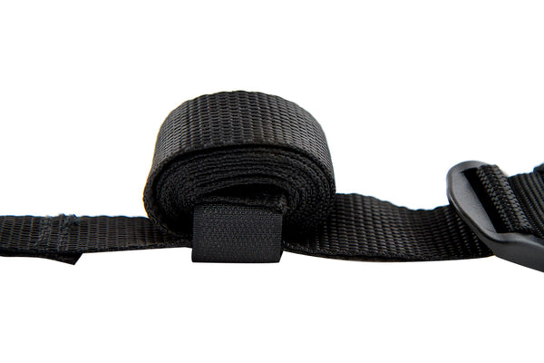Cinch down loads simply and effectively so you don't have to worry about gear rattling loose on bumpy roads. Adjustable from 22" (560mm) to 63" (1524mm) and with an additional 8" (203mm) when fully stretched.  Won’t damage your expensive gear like surfboards through over tightening. Stratchits absorb tension like a stretchy ratchet strap. Quick and efficient. Simply secure the ends and hand tighten the strap. Fastens to, and around, just about anything. Perfect for Front Runner Racks and accessories, but work with all roof rack systems. Many uses! Secure: SBOX031, SBOX001 and other cases (Pelican, Zargas, Alu-box, etc.) to any roof rack. Secure: Surfboards, SUP, bicycles, firewood, chairs, etc. Keep your rack clean and organized with the cinching hook and loop strap that neatly stows away excess strap length. Sold in pairs.   HOW TO USE:Hook to the Front Runner Roof Rack RRAC012 or RRAC025 or loop around the slats or side profiles and fasten the Stratchit to itself.You can even remove the carabiner and loop the Stratchit through itself - to fasten around any roof rack rail, railing, pole, bumper, tire carrier.... etc.WARNINGS:Please read and follow all these warnings carefully -- failure to do so could result in cargo damage and could cause injury.Do not over tighten. Use only hand leverage.Never stand in the direct path of the Stratchit when tensioning to prevent the risk of injury should the strap become detached.Loads settle. Check Stratchit after first 10 miles of driving and each 50 miles thereafter.User to evaluate working load and requirements. DO NOT use to support human weight under any circumstance.Check the Stratchit regularly for signs of deterioration or damage.To ensure longevity, please remove the Stratchit from the sun and weather elements when not in use.Make sure that the points of attachment to the vehicle or trailer are of sufficient strength to withstand the maximum loading that will be produced during use.Take additional care if securing large objects that may be subject to aerodynamic lifting forces caused by bumps. Always use the appropriate number of straps and drive at reduced speeds to minimize the effects of these forces.