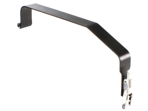 A replacement top strap for the JCHO019 that securely fastens your Jerry Cans for a no rattle, no wear solution. This strap covers the jerry can caps. Features a stainless steel safety catch. Add your own padlock or RRAC134 and you'll never have to worry about stolen fuel while on the road. Made of black powder coated stainless steel.