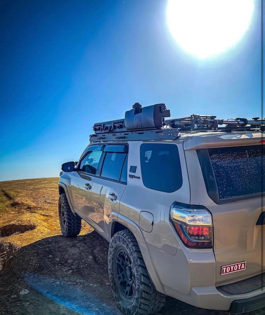 Made from steel this mount fits on most platform style roof racks: Prinsu, Front Runner, Echotune, SSO, and Wood Grain Warrior. Both variations also come with mounting hardware (2 1/4x1" carriage bolts, locking nuts, and washers), but extra or specialized hardware may be needed depending on your rack.